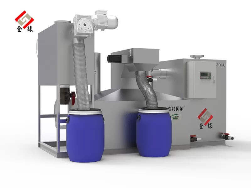 Продукт обрабатывается путем разделения твердых и жидких отходов, разделения масла и воды, сбора жира, подъема и других процессов для реализации трехфазного разделения сточных вод, жира и твердых остатков в сточных водах, сточные воды непосредственно сбрасываются в сеть канализационных труб, а смазка собирается и централизованно обрабатывается (рафинированное биодизельное топливо). Твердый остаток централизованно передается в центр очистки мусора. Продукт автоматически работает без присмотра, с низким уровнем шума и низким потреблением, без запаха и утечки. Его можно подключить к центральной системе управления для контроля состояния работы, что соответствует современным управленческим потребностям смежных предприятий.
